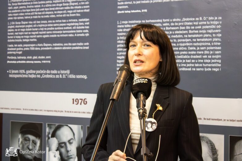 Otvarajući izložbu, predsjednik Opštine Kotor, Vladimir Jokić govorio je o važnosti baštinjenja vrijednosti za koje se Kiš zalagao.